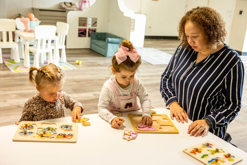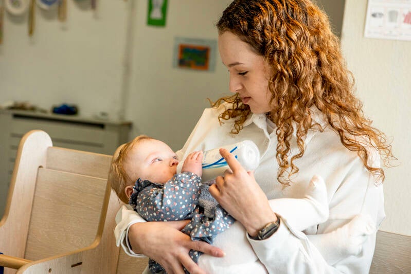 De pedagogisch professionals begeleiden de kinderen door aan te sluiten bij hun interesses en ontwikkelingsfase en door het kind uit te dagen net iets meer te laten zien dan het uit zichzelf kan.